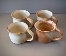 Set of 4 mugs with plain handles. White clay with Folk Art White glaze Cone 6 Oxidation